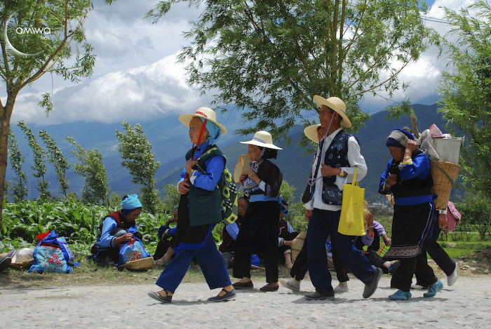 Cette galerie de 34 photos présente une fête locale dans le comté de Dali où la nationalité Bai se regroupe à l'occasion de festivités religieuses. Vous pouvez observer la variété des vêtements traditionnels bai (les couleurs changent selon l'âge de la personne qui les portent) où le blanc est à l'honneur chez les jeunes femmes. Les broderies des coiffes, porte-bébés, et autres vêtements sont remarquables.